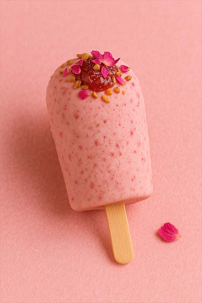 Rich, creamy, rose-infused Gulkand kulfi indulgence.