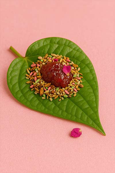 Sweet, fragrant, refreshing Gulkand pan treat.